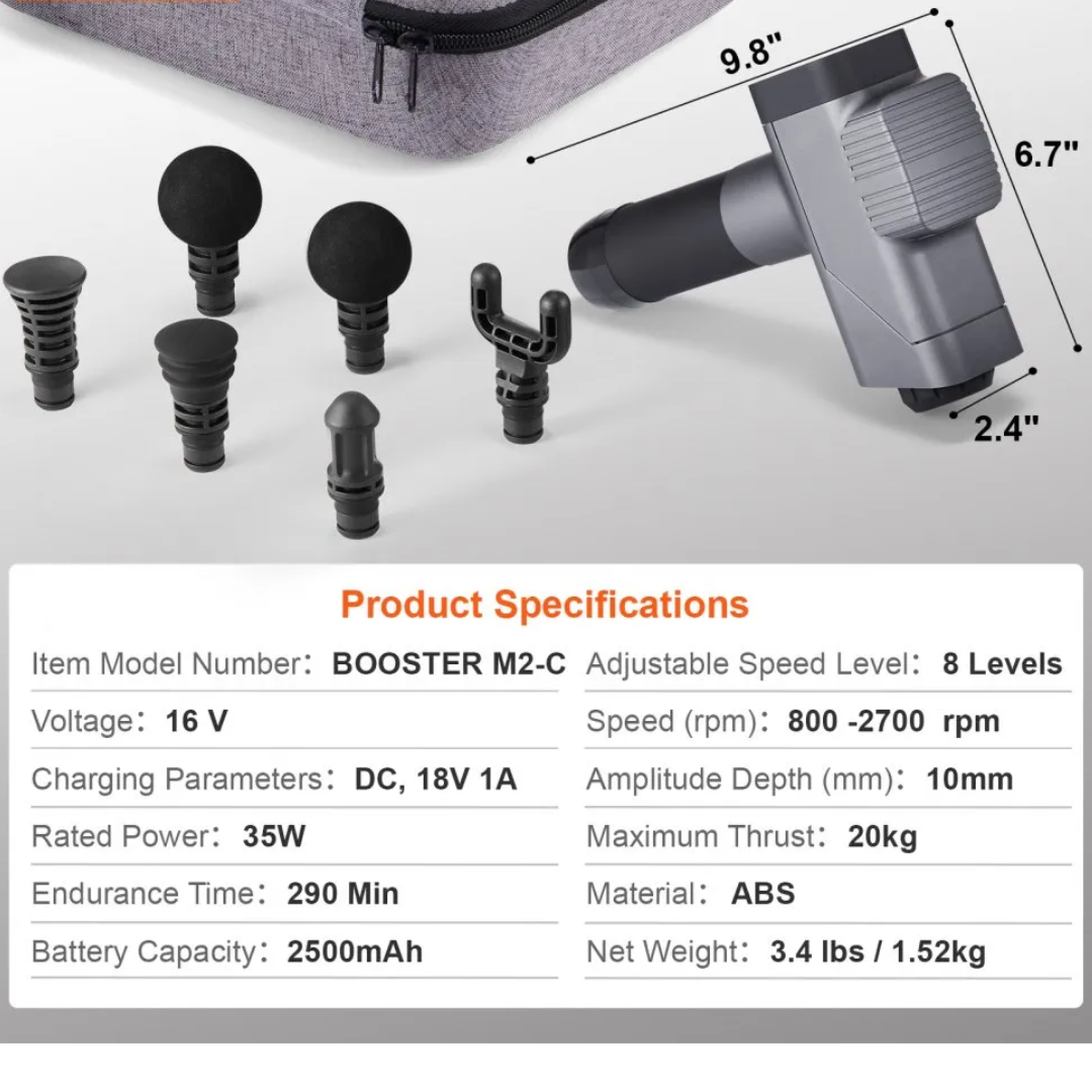 Customizable 8-Speed Settings: Tailor your massage experience with 8 speed levels and 6 interchangeable massage heads. With adjustable speeds ranging from 800rpm to 2700rpm, VEVOR percussion muscle massage gun will meet your needs for both routine muscle care and deep post-exercise massage.